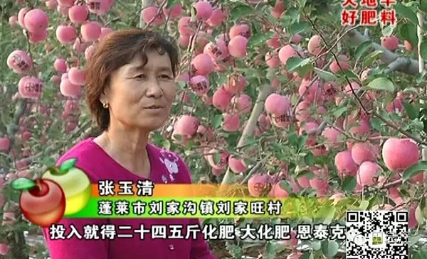 蓬萊市新港街道劉家旺村果農(nóng)張玉清,人稱“蘋果媽媽”。她種植富士,14年生,畝株數(shù)36株,株套袋數(shù)都在1000袋以上,畝產(chǎn)萬(wàn)斤以上,連續(xù)7年使用眾德進(jìn)口肥套餐方案,連年豐產(chǎn)豐收,畝效益在3萬(wàn)元以上。