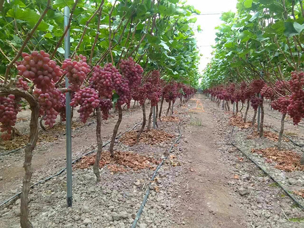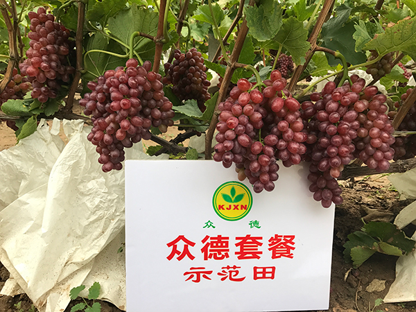 2015年10月20號,山東龍口市諸由觀鎮(zhèn)舒師傅的克瑞森葡萄喜獲豐收,通過專家現場測產,4畝3年生示范園的畝產均在4000斤以上,而對照田只有3500斤,增產率達15%,今年畝效益超過2萬元。無論在果穗整齊度、顆粒大小、色澤、糖度、外觀上,示范園的葡萄均勝對照田一籌。